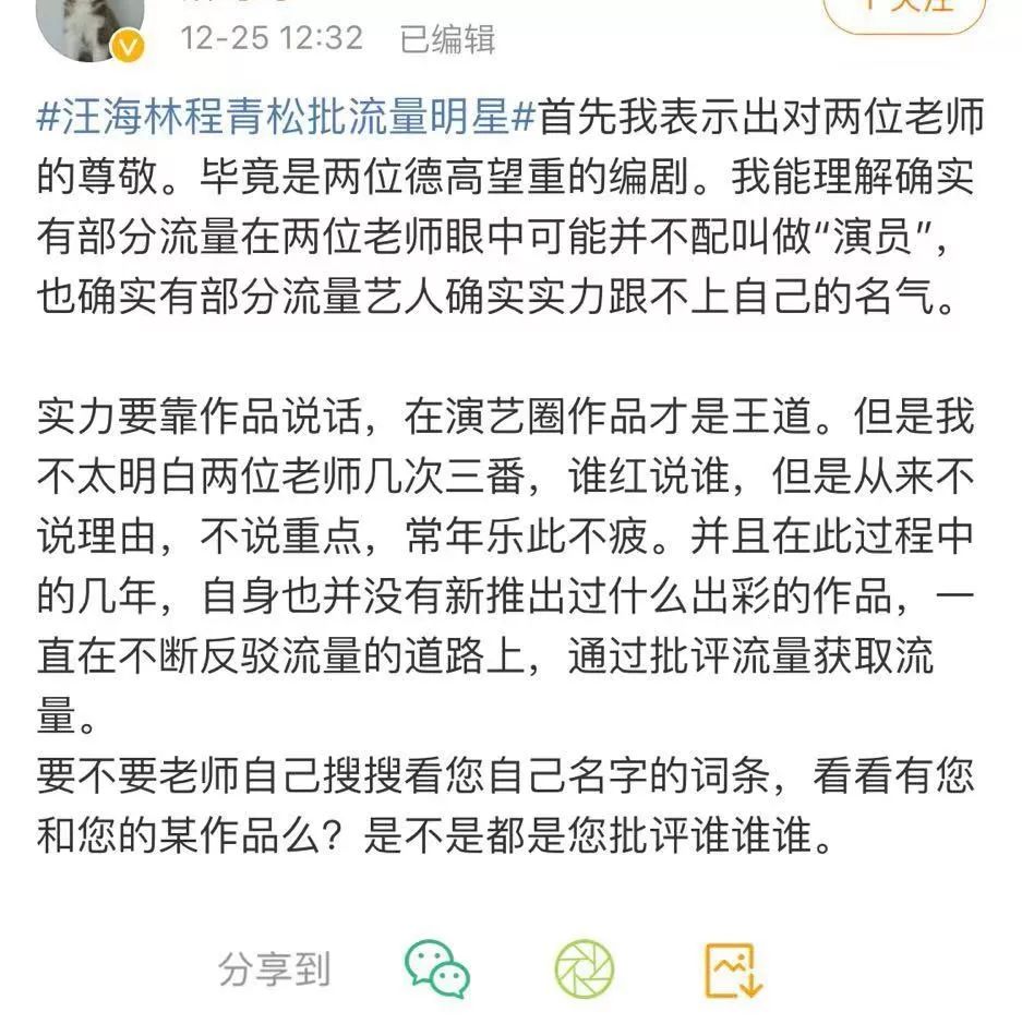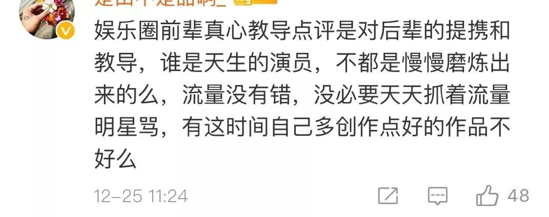 而且光是点评演技也就算了,毕竟新人演员在演技上的确有不足之处,别说你圈里前辈可以批,就连观众都可以批。