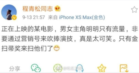 程青松,办的“金扫帚奖”之前被爆说威胁杨幂...