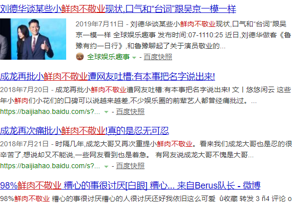 甚至微博一度出现类似 #98%鲜肉不敬业#的话题...