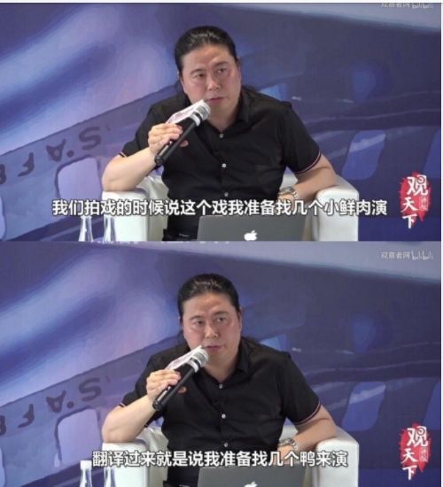 他们拍戏的时候说这个戏准备找几个小鲜肉演,翻译过来就是在说准备找几个鸭来演↓