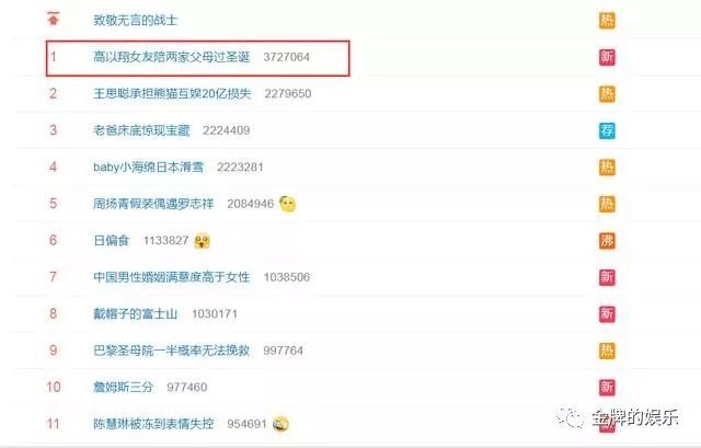 短短的半天时间,“高以翔女友陪两家父母过圣诞”居然被顶上热搜第一位,从第十七位冲上第一位仅仅用了十多分钟。可见大家对于高以翔事件仍然非常的关注。