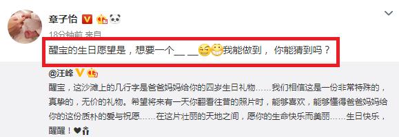 有趣的是,有网友还拿汪峰打趣,称醒醒的愿望是要个妹妹,但是汪峰的愿望是要个热搜。即便这次醒醒生日,汪峰的热搜还被韩庚婚礼抢了去,可谓闻者伤心。希望章娘娘第三胎出生时,汪峰老师能真正得到属于自己的热搜。