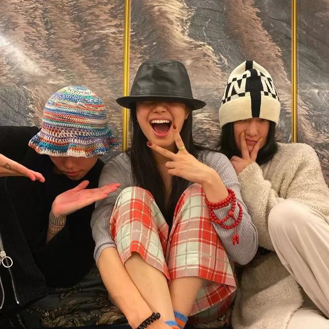 三人关系甚是亲密,一起拍摄捏脸合影,关系不一般。