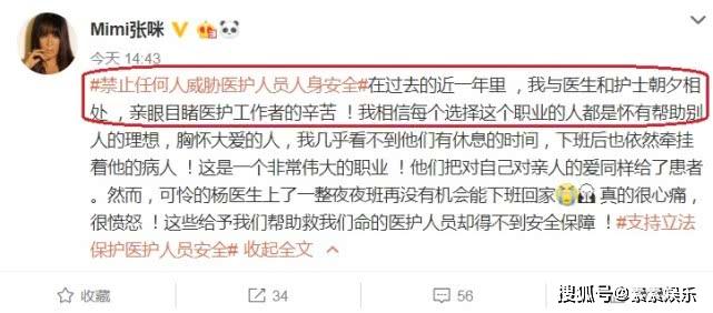 张咪本人也是在12月28日更新发文,表达出自己对医护工作人员的感谢。