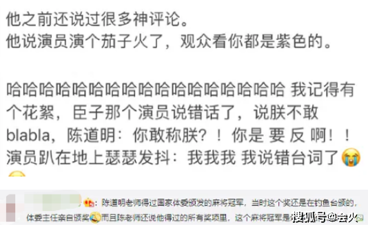 12月27日,“陈道明太有梗”冲上热搜,网友纷纷曝出陈道明更多趣事,身为资深演员,获得的众多奖项中最在意的却是全国麻将冠军。这一反差让不少网友忍俊不禁,陈道明的一些神回复也是网友大感意外,没想到正经外表下的陈道明,却如此幽默搞笑。