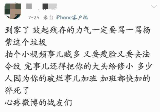 而此前杨紫还疑似被修图师吐槽,拍小视频事儿多,一下要瘦脸一下子要去法令纹,一下子要修小头。吐槽有多少人因为这事加班。