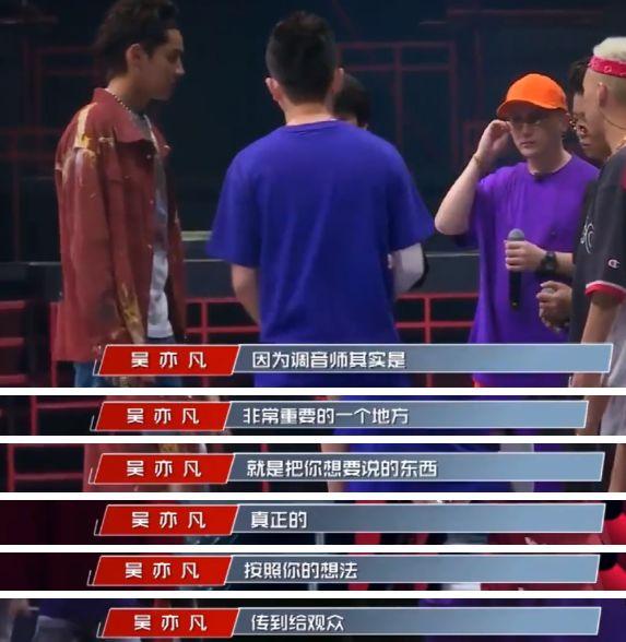 而吴亦凡在参加《中国有嘻哈》在线观看(✪ω✪)时也曾表示过调音师的重要性,称调音师能把自己想要说的东西真正的按照自己的想法传给观众。