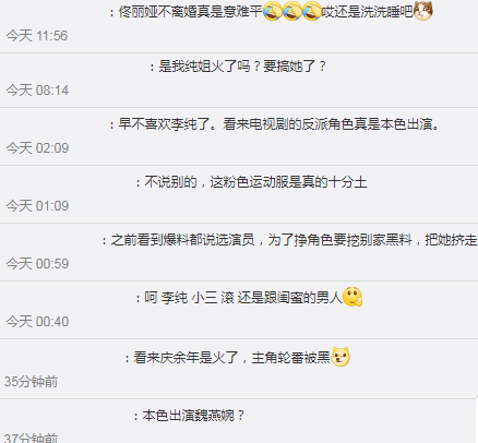 当然,也有一些网友吐槽李纯的粉丝“双标”,认为过去的“黑料”也是“黑料”,并不代表其不存在。更有网友吐槽没有想到李纯是这样的人,也难怪其和佟丽娅不再是闺蜜了。但也有不少网友认为“黑料”归“黑料”,还是希望李纯能继续出演司理理这个角色。