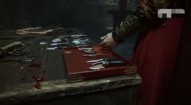 选定了一把刀之后,镜头带到了男主的背影,似乎依然是漫不经心地在细细品味这把刀。这时候犯人停止被用刑,并开始用兵部的身份对男主施压。