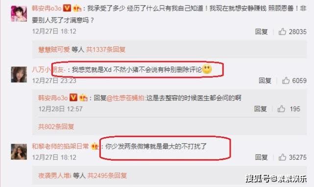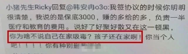 但事情还没的结束,这一次是小猪本人在韩安冉的账号下面留言声称她当着孩子的面吸D。