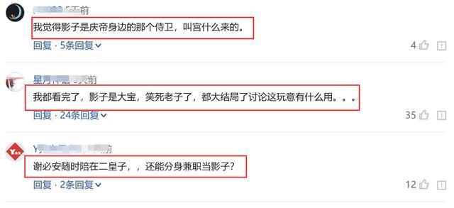 有人先猜测是庆帝身边的高手宫典。还有人推测:我都看完了,影子是大宝,笑死我了,都大结局了讨论这玩意有什么用。因为有人推测有可能是谢必安,因为他们都是用剑高手。观众反驳:谢必安随时陪在二皇子,还能分手截止当影子?