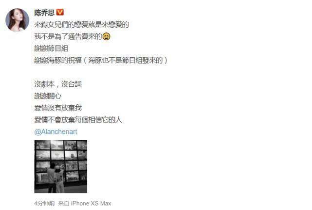 如今看起来两个人的感情依旧非常甜蜜,既然当事人已经做出了自己的选择,对于误会也给出了解释,希望陈乔恩能够一直幸福,早些带来好消息吧。