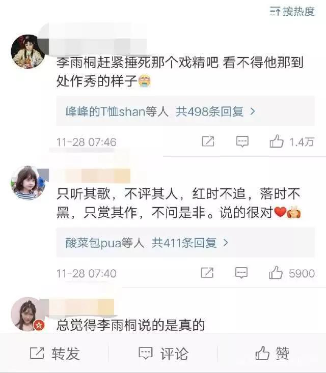 在其这条微博评论区内,好奇心强的网友们自然是不会放过这个机会,在下面大家纷纷留言猜测到底李雨桐文中所指的人是谁?有网友怀疑是李小璐,这也让大家嗅到了一丝八卦的味道,李小璐此前在宣布和贾乃亮离婚之后,发布长文,将自己在这些年来所受的委屈全都一一吐露出来,并且还直接斥责网络暴力,并希望外界不要干涉自己的家务事儿。而李雨桐则反其道而行之,表示犯了错,就不应该把错归咎在网络暴力上,这不难让人联想到她是在暗讽李小璐。