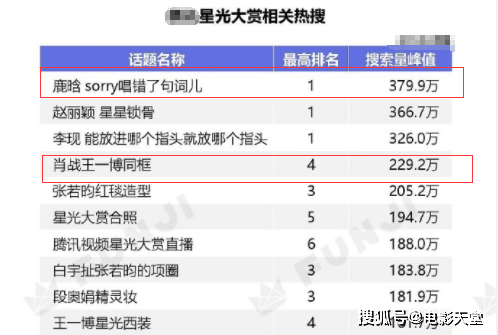 但是即使是今年的两大“顶流”的“世纪同框”,在热搜榜上最高也只到第四名,搜索量峰值仅两百多万,和鹿晗的379万相差甚远,从这点也能看出鹿晗的影响力还是非常强的,至少是肖战王一博同框的热度都没能抢掉他的风头。