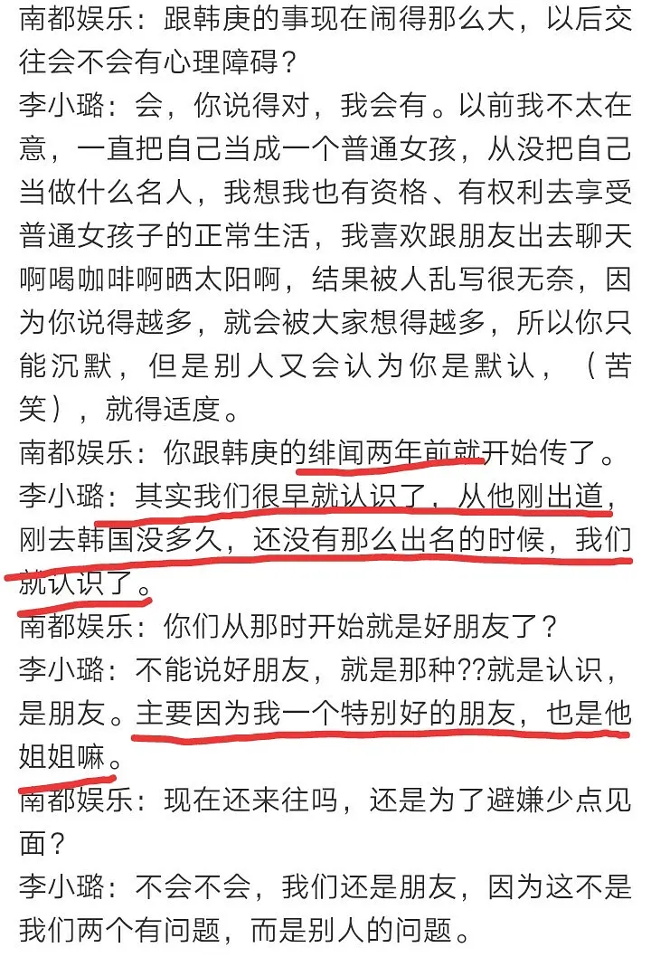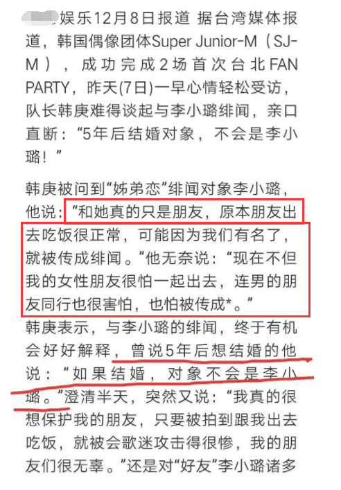翻看早年关于此事的报道,当时两人被偷拍之后都公开接受采访做出回应。其中韩庚表示和李小璐只是朋友,但因为有名了就被传成绯闻,很无奈。