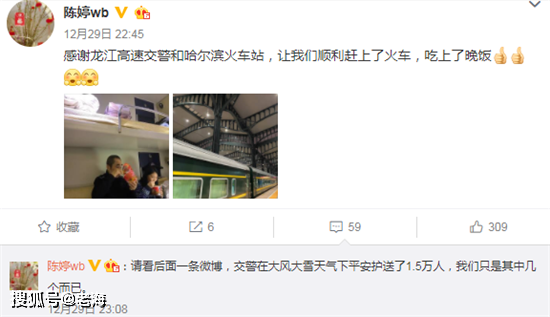 在返京的时候,遭遇暴风雪。据陈婷给的新闻链接显示,因为突然到来的大雪,高速公路被迫封闭。造成了黑龙江的雪乡一下子滞留了1.5万人在火车站。然后一大批交警冒着严寒、顶着风雪,把这1.5万人护送到了各自的目的地。(可能走的是普通火车。)而他们一家人,只是这一万多人中的几个。所以不存在使用了什么特权。