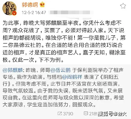 但确实,相比2016年时,郭德纲大方对外公开称自己要力捧儿子,且三天两头转发儿子的相声、拍戏、杂志大片动态,如今的郭德纲,似乎真的很少会提到郭麒麟。