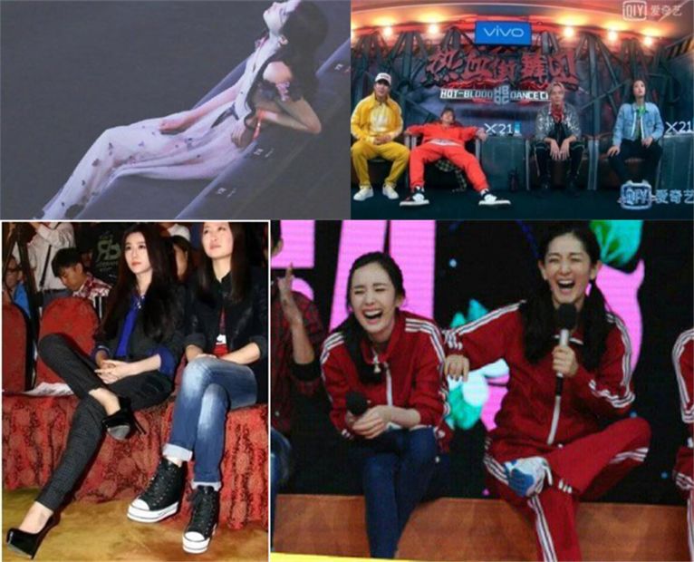 这就明显有点过了:如果是在台上,那么这个坐姿确实不妥;然而这显然是在台下休息区,所谓休息区就是让明星候场休息的地方,跟那些节目里在后台化妆间里候场休息其实说白了是一样的。
