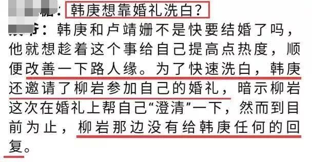 而此前韩庚传出婚讯,网上又有消息称韩庚想邀请柳岩出席婚礼为自己洗白,不过柳岩那边没有给任何回复。