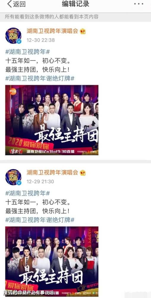 12月31日,有细心的网友发现湖南卫视跨年主持阵容照片似乎进行了更改,引发了众人的热议。在没有修改之前,何炅与汪涵分别位于左边和右边的中心位置,相当于是双“C位”,紧接着才是“快乐家族”和“天天兄弟”等主持人。
