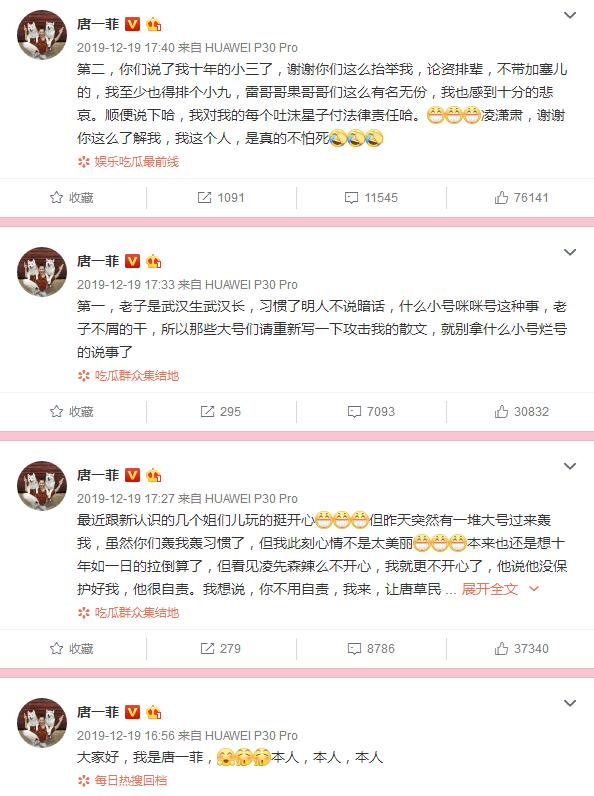 随后,唐一菲从此就开始了和其他明星一样利用微博扯眼球博关注,宣传自己的节目以及丈夫凌潇肃的影视作品,这些都无可厚非,因为明星都这样干,确实微博对明星自我宣传效果很好。