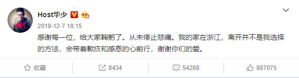 对此,华少在高以翔猝死后,第一时间通过微博透露出了自己的心声,称从未停止过悲痛,但因为家在浙江,离开不是选择的方法,会带着歉疚和感恩的心一路前行。言外之意就很明显了,高以翔的死对他而言绝对是重创一击,但又无可奈何浙江卫视一手捧红成并成就了他现在的辉煌腾达。