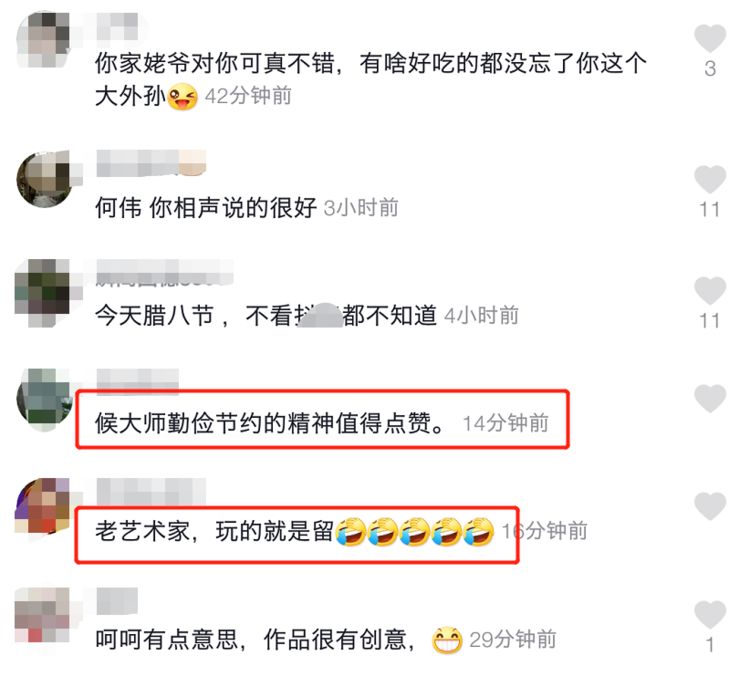 网友们看到两人合作的小段子,也纷纷送上称赞。有网友为侯耀华送上祝福,称希望侯耀华能身体健康万事如意,也有网友表示两个人都是自己喜欢的相声演员,称赞段子表演得很好。还有更多人称赞侯耀华勤俭节约,要为这样的精神点赞。