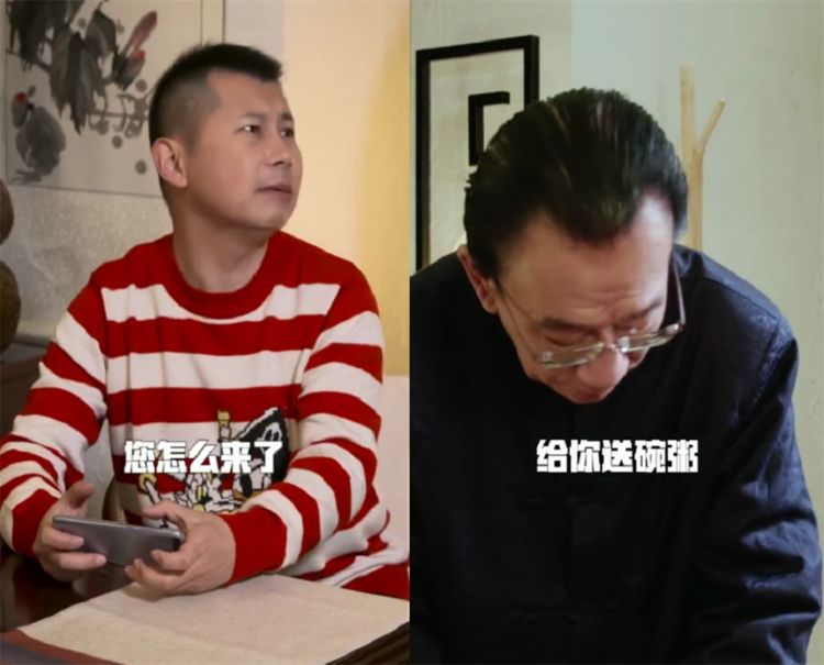 在视频中,一开始就是侯耀华手里拿着一碗粥进门,并问何云伟“起来啦”。而何云伟则表现得有些吃惊,说到“呦老爷子您怎么来了。”侯耀华很自然地表示“这不腊八了,给你送碗粥来。”让何云伟受宠若惊“您来就来,还带什么粥啊!”