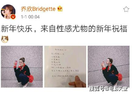 2020年刚过去两天,在元旦那日乔欣在社交账号上发文给大家送上新年祝福,还亲手写上了一段小文字,自称“性感尤物”还配上了自己的两张照片,话语间也感受到乔欣作为调皮可爱小女生的一面。