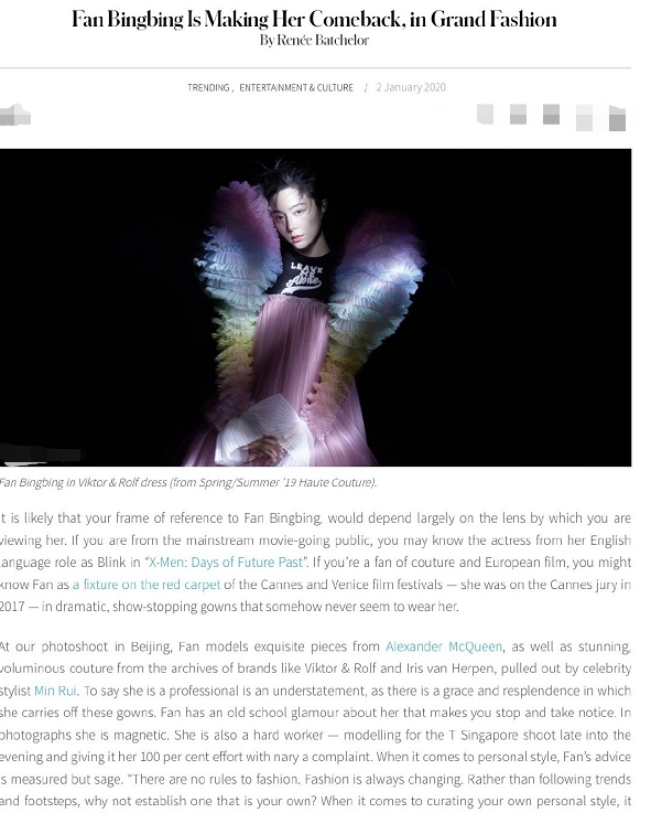 此次范冰冰不仅荣登新加坡知名杂志,而且杂志官方对范冰冰的评价颇高。