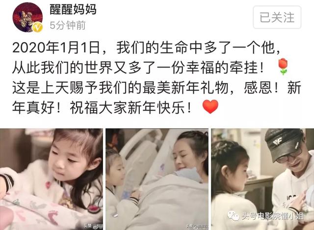 这次,她宣布在2020年1月1日生了个儿子,发布的照片中,她和汪峰所生的女儿醒醒也靠在床边,看着新出生的弟弟。