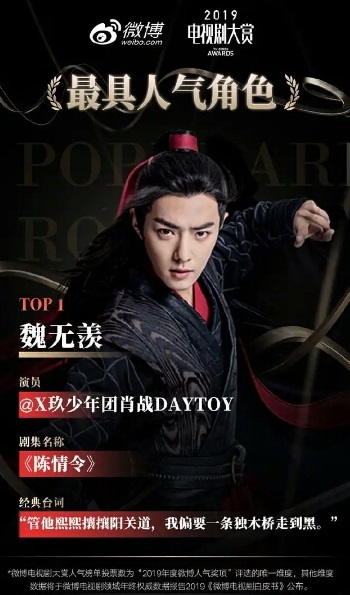 排在第一位的角色和排在第二的角色是出自同一部剧,相信很多人都已经猜到了,没错就是魏无羡