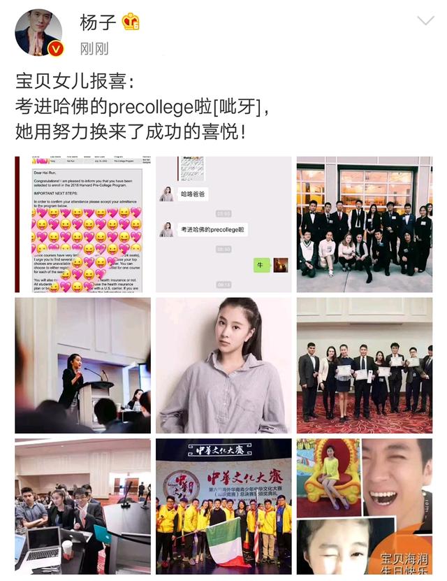 杨海润在2018年的时候考入了哈佛的预科班,引起了不小的轰动,当时的她才只有15岁!杨子称杨海润是“宝贝女儿”, 从称呼可以看出来他对孩子的宠爱!