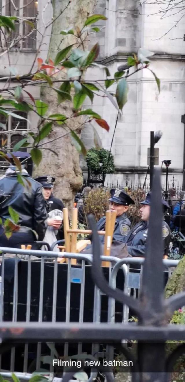 哥谭市警察在片场休息,不知道在谈论着什么。