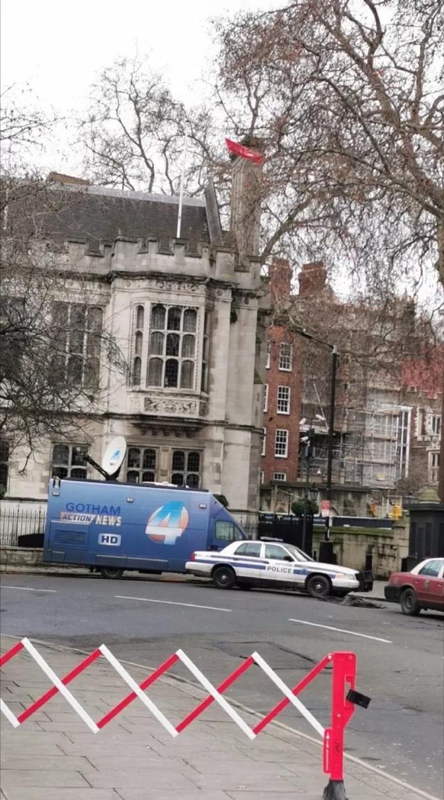 并且粉丝们就发现了哥谭市新闻车,警车,出租车现身伦敦街头。