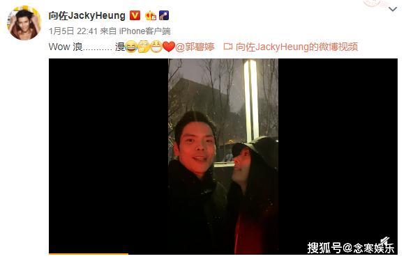 至于外界为何会对向太分享的婚姻段子猜想连连,主要在于昨晚向佐在微博上分享了一则短视频,晒出了他与爱妻郭碧婷在大雪中浪漫合影,二人如热恋般的情侣一样,分享着北京新年第一场大雪的喜悦之情。