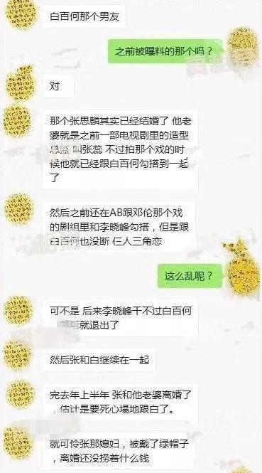 事情的起源在于一张聊天截图,总结一下上面的内容,就是该网友称疑似白百何新爆出来的男友已经结婚了,老婆是造型总监,在两人还没离婚的时候,他就已经跟白百何勾搭到一起了。