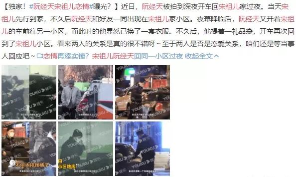 而去年12月宋祖儿曾被拍到与神秘男子挽手现身街头,被猜测恋情曝光。当时她却晒出与该男子的合照,火速辟谣澄清只是朋友。对于多次被拍到,两人也从来不回应,这回已经第三次被拍摄到,不知道这一次两人会不会有什么回应呢?不知道这次又再度传出与阮经天恋爱的消息,宋祖儿会如何回应呢?让我们一起等待官宣答案吧。