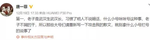 但是唐一菲认为自己背上骂名实在太委屈了,在各种公共场合,各种暗示,先被网友发现疑似注册小号暗讽姚晨是手下败将。