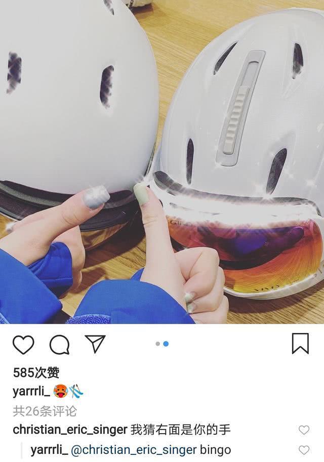 随后李嫣又晒出了一张只有两个头盔的照片,同时和朋友一左一右伸了两个大拇指出来。感觉李嫣这次滑雪的心情应该很不错,非常爱美的她和朋友还做了很精致的美甲。有网友猜测右边的手是李嫣的,李嫣则回复称bingo。