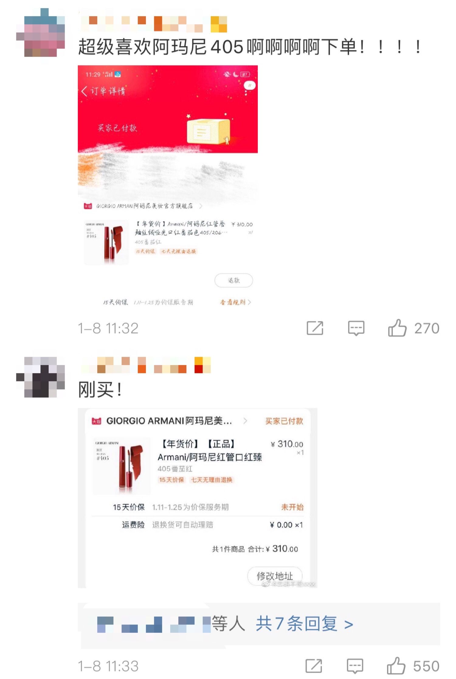 新京报讯(记者 于梦儿)1月8日,法国欧莱雅集团旗下品牌阿玛尼在官方微博宣布,00后男明星易烊千玺成为阿玛尼彩妆代言人。品牌方面表示,易烊千玺的自信、优雅和质感完全诠释了品牌的时尚哲学与独特魅力。消息发布后不久,不少粉丝纷纷在该条微博评论区晒出订单。