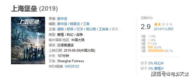 《上海堡垒》一经上映就遭到了观众们的群嘲,豆瓣评分仅为2.9分,甚至有观众在电影院里面就大喊退票,最终票房仅为1.2亿,一半投资的费用都没有收回来。