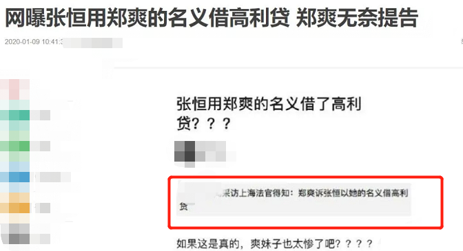 近日,张恒被知情人士爆料,称他竟然在与郑爽合作期间,以郑爽的名义借高利贷,这件事曝光后就更让人吃惊了。