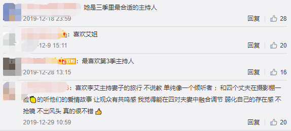 前面两位主持人的观众缘都很一般,这次换成李艾后,大家都对这个同理心特别强,且又能把握节奏、会说话的主持人充满了好感,对她都是一水儿的好评。