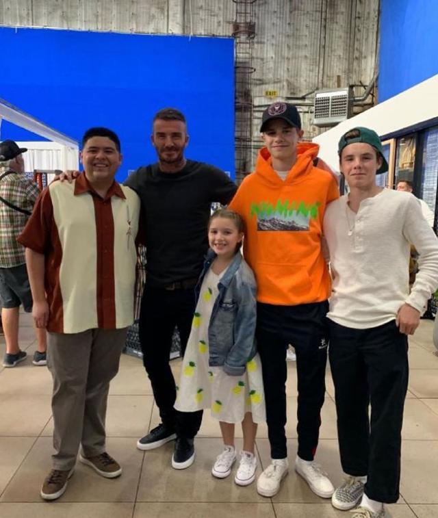昨晚,贝克汉姆客串的《摩登家庭》终于播出了,一部电视剧从开拍到播出真的需要挺长时间的。终于播出了,真是可喜可贺,奶爸还晒出了小七当时去探班时候的照片。小七穿着一个牛仔外套,挺大的,一看就是三哥的外套。带着耳麦,一本正经的看着摄像机,还真有点大导演的架势。
