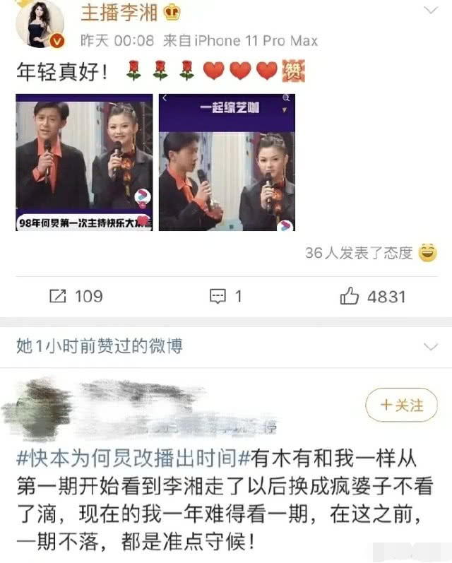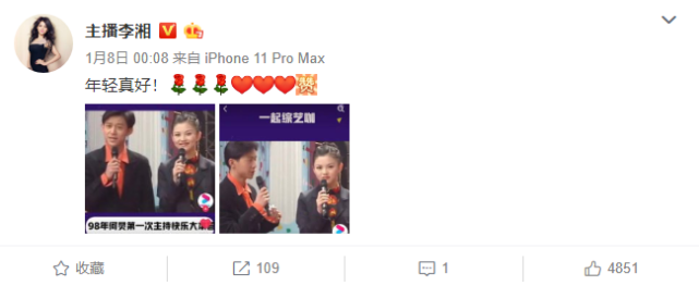 不知李湘是出于什么心情转发该组照片,是不是在默认自己的主持功力吊打谢娜。随后,李湘可能觉得自己的行为不太妥当,然后又自己重新发了一遍,去掉了网友评论的那张截图。