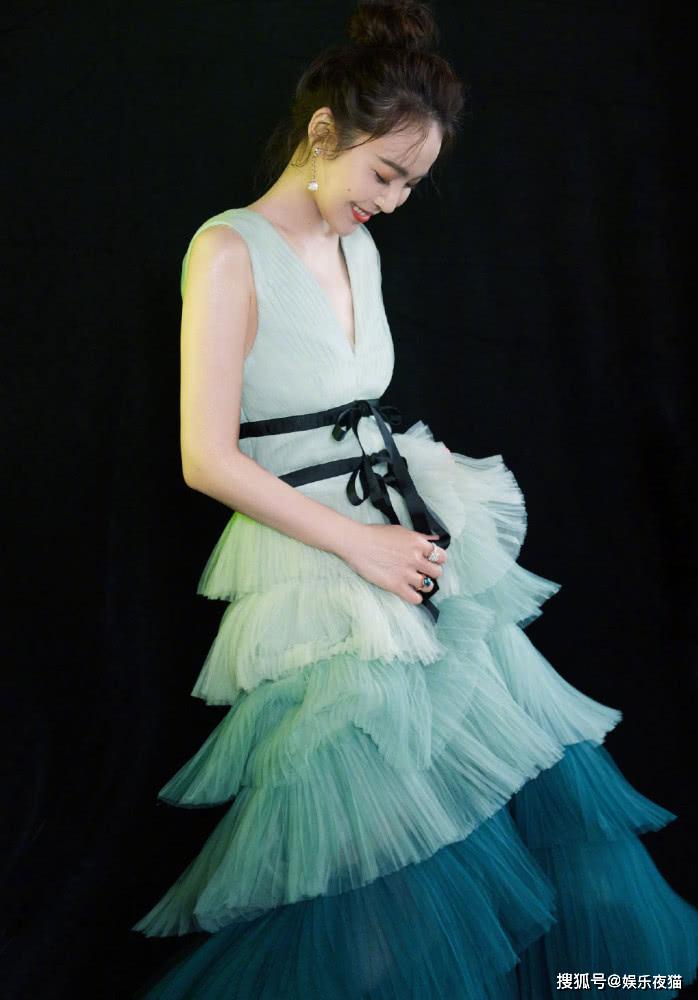 1、渐变蓝蛋糕裙。蓝色其实是很温柔的颜色,只要一穿上蓝色,就像是穿上了一片大海,并且张佳宁的这款蓝色,并不是简单的蓝色,是一款渐变设计的蓝色,穿上也是温柔又高级,虽然整体的设计是比较偏礼服范的,但是只要找到了合适的场合,那么就是吸睛的存在。