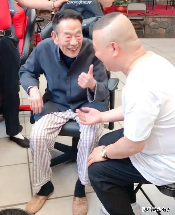 期间杨少华还紧紧抱住郭德纲的胳膊,像一个小孩子般粘着不放,郭德纲也十分亲密的将手放在杨老先生的腿上,似是安抚一般。