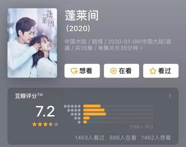 先说说粉丝关于这部剧的评价,目前《蓬莱间》的豆瓣评分7.2分,这个分数还是不错的。关于这部剧的口碑,也是呈口碑两极化的趋势。