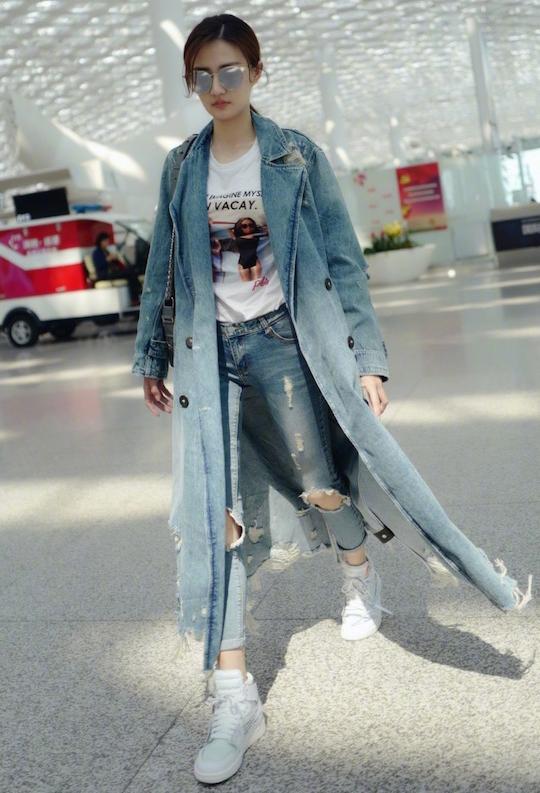 一身全牛仔的穿搭,脚踩白色球鞋,青春时尚,可盐可甜。及脚踝的长牛仔风衣,可以说是耍帅的一把好手,在内随意搭一件印花T恤,就很有街头风的感觉。将上衣扎进裤腰,长腿一览无遗,这才是真正“腿玩年”呢,身材好比例完美展现。再加持一副墨镜,配上大步流星,走路带风的酷范就出来了。